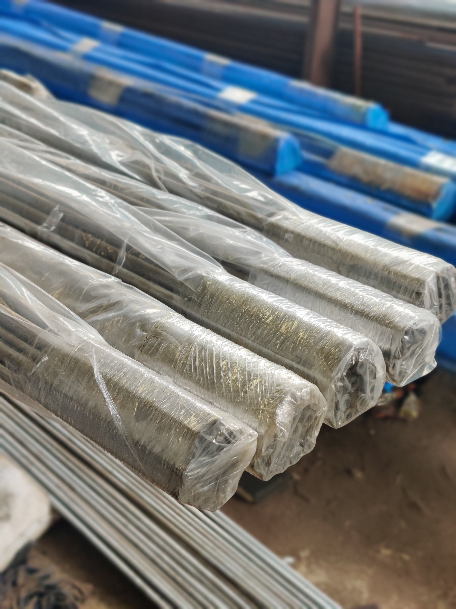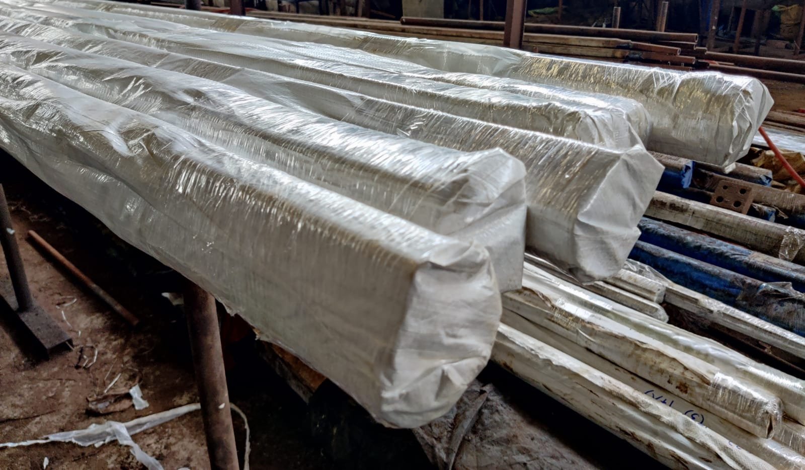 Each bundle covered with plastic for protection